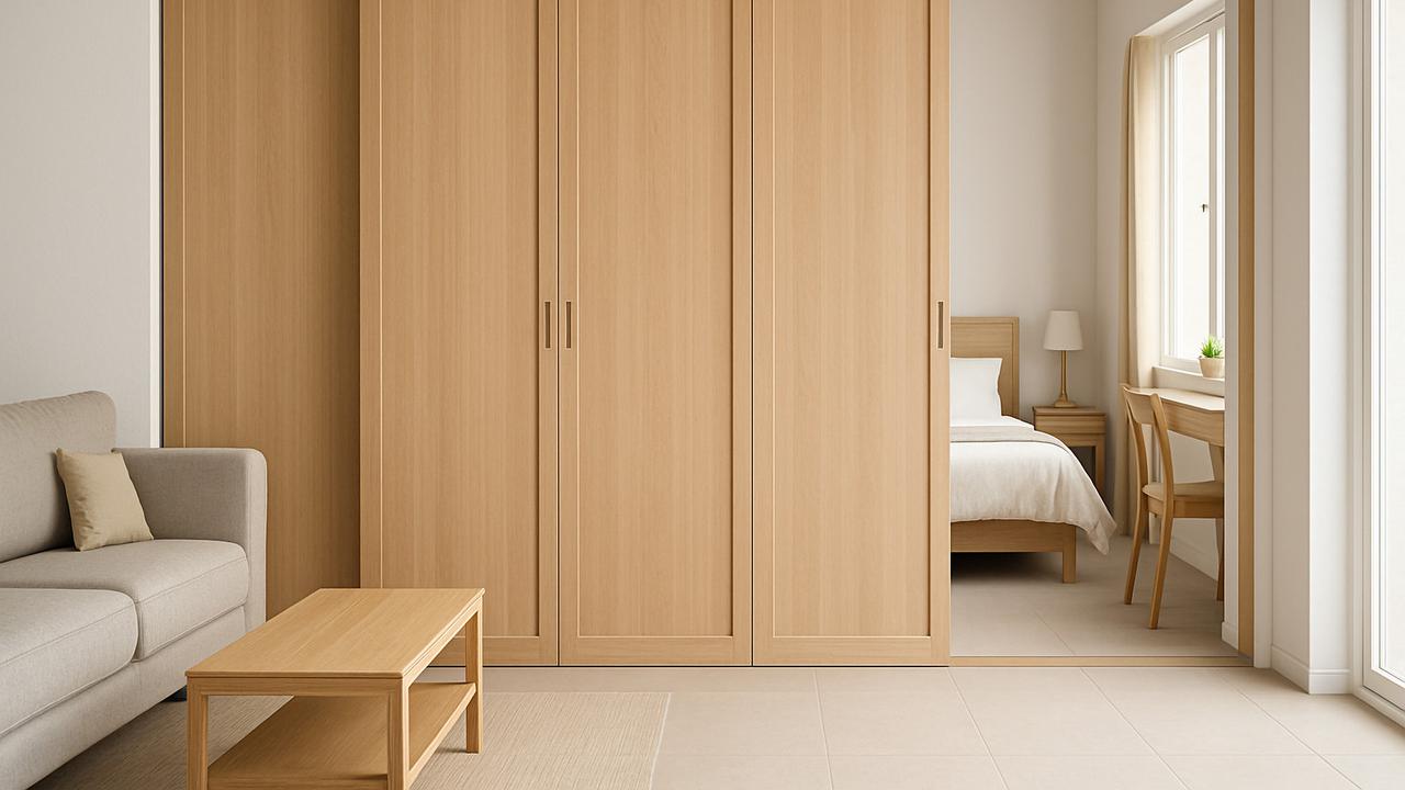 Ruangan minimalis identik dengan desain bersih, warna netral, dan minim sekat permanen. Partisi geser hadir sebagai solusi yang sejalan dengan konsep tersebut. Dibandingkan dinding konvensional, partisi geser tidak membuat ruangan terasa sempit atau tertutup. Saat dibuka, ruangan dapat menyatu secara visual, sedangkan saat ditutup tetap memberikan privasi yang dibutuhkan.